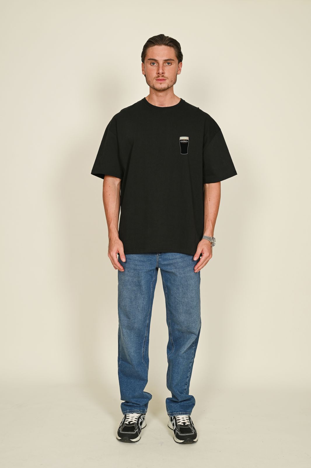 Pint of black a day, to keep the scaries away. My goodness, it's a bad day to be a guinness. Comes in either a relaxed fit, or oversized: